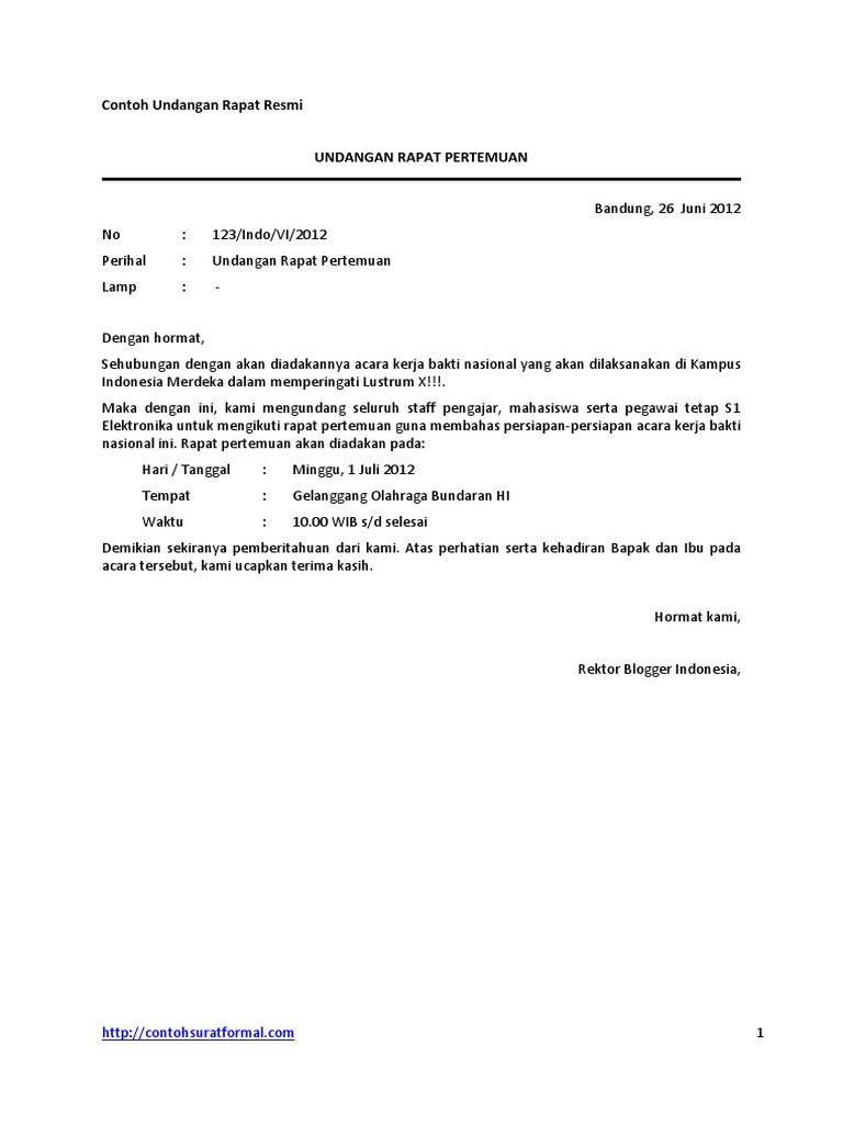 Surat undangan resmi merupakan surat undangan yang dibuat oleh suatu perusahaan, instansi atau organisasi dengan format yang resmi. Dengan hormat demikian surat undangan ini kami buat, kami berharap seluruh warga dapat ikut serta dalam kegiatan ini demi meningkatkan rasa peduli terhadap lingkungan dan menjaga kekompakan. Pada format ini pembuatan surat undangan. Pembentukan struktur pengurus kerja bakti. Tari kreasi yang tidak memiliki aturan tertentu baik dalam bentuk gerak maupun aspek lainnya disebut.